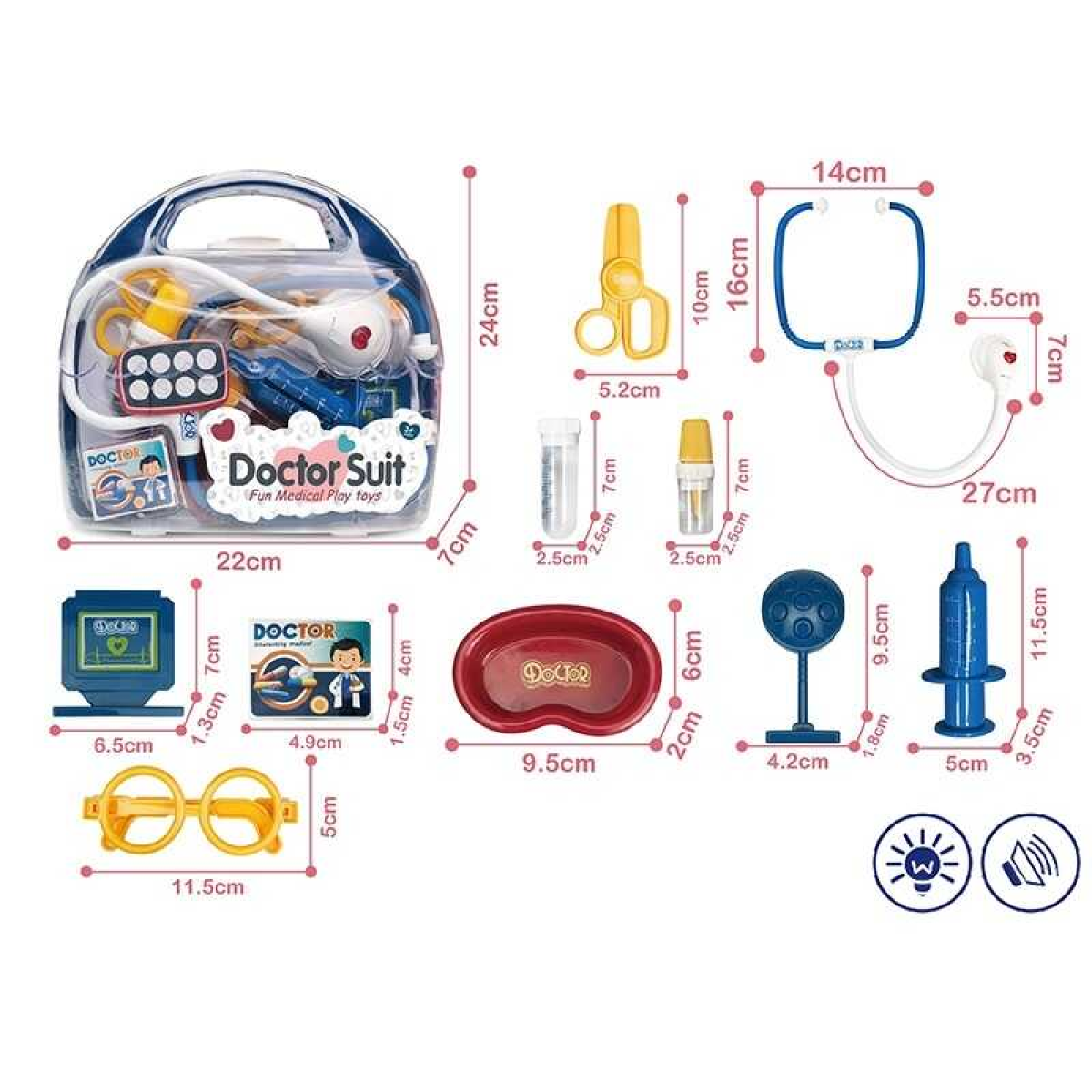 Набір лікаря 8807-8 (36/2) підсвічування, звук серцебиття, медичне приладдя, муляжі ліків, окуляри, у валізі