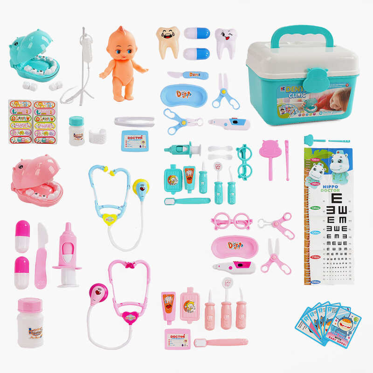 Набір лікаря HZ 811 B /HZ 611 B (36/2) 2 види, 30 елементів, звук, підсвічування, стетоскоп, щелепи із зубами, пупс, інструменти, пігулки, окуляри, у боксі