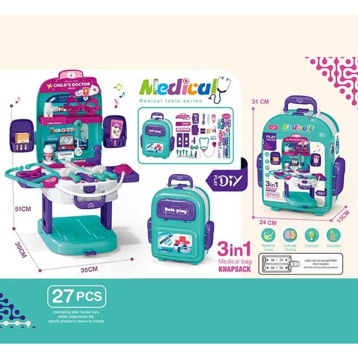 Набір лікаря T 2158-1 (24/2) медичний столик, озвуч. англійською мовою, набір інструментів, стетоскоп, термометр, шприц, ножиці, на батарейках, підсвітка, музика, пісні, у валізі