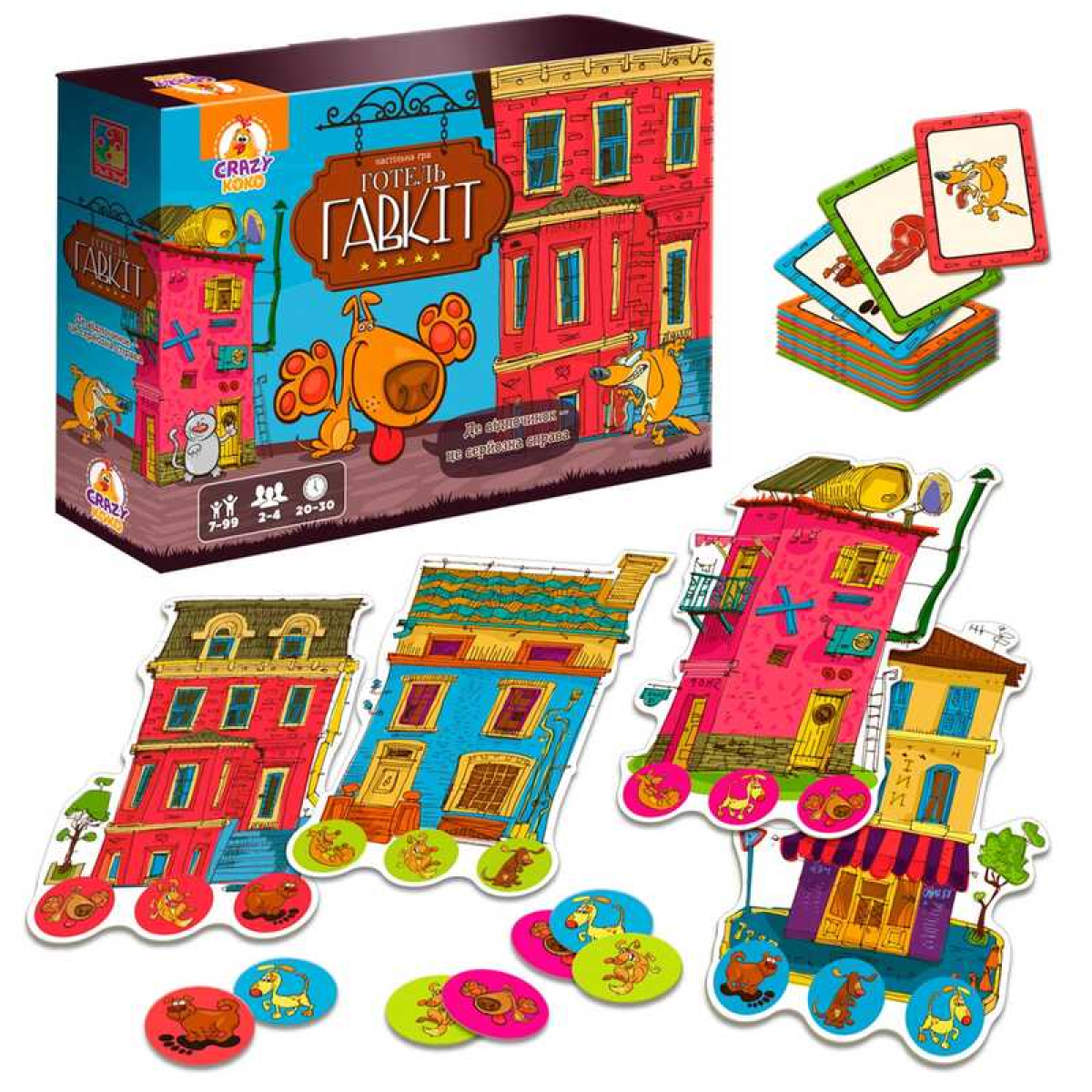 гр Гра настільна розважальна “Готель Гавкіт“ VT8055-43 (5) “Vladi Toys“, 4 готелі, 24 жетони собак, 100 карток, правила гри, в коробці