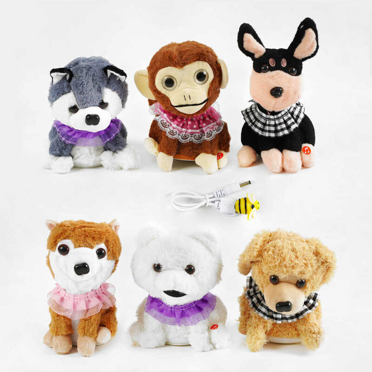 М`яка іграшка C 61639 (100) 6 видів, висота 22 см, рухає головою, повторюшка, магнітна бджілка, USB-кабель, пісні англійською мовою, ВИДАЄТЬСЯ ТІЛЬКИ МІКС ВИДІВ, у пакеті