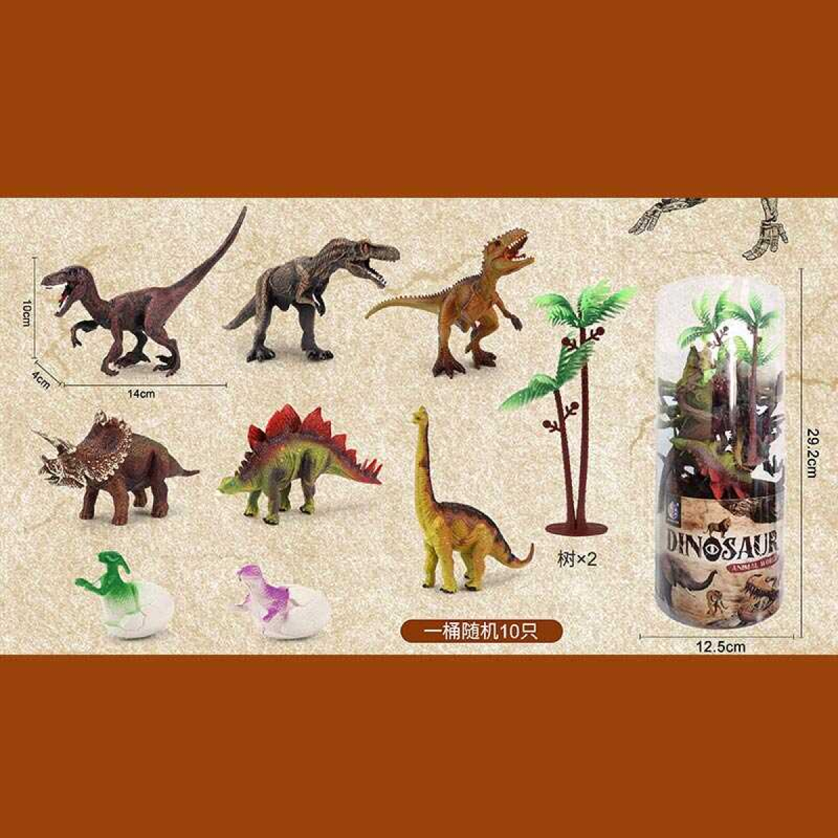 Набір динозаврів JB 008 T (36/2) 10 дорослих особин, 3 особини в яйці, пальма, в тубі