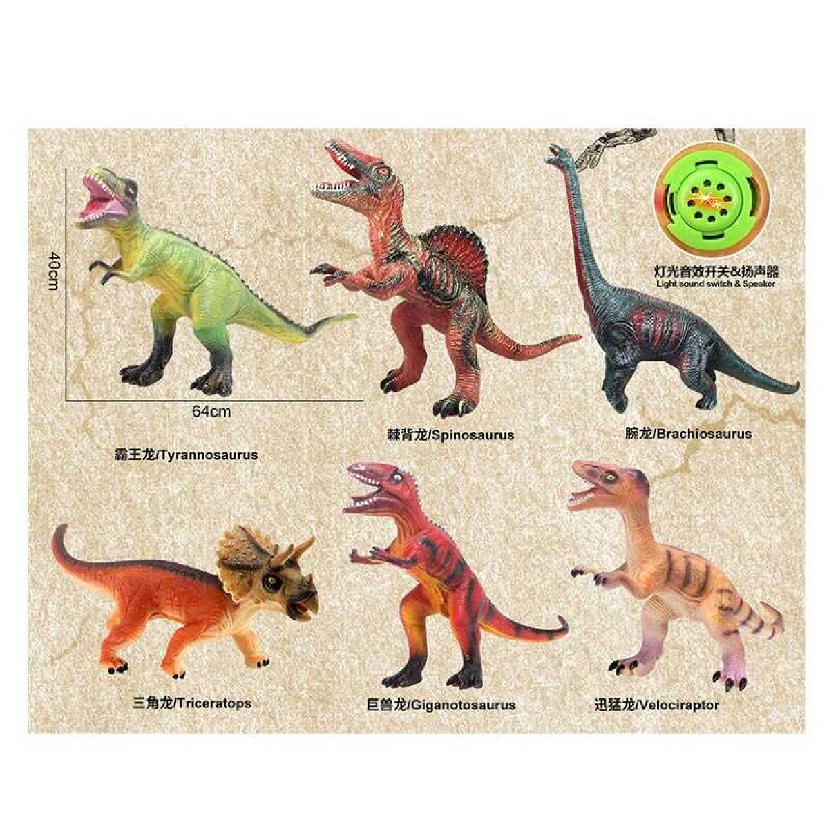 Динозавр JB 018 B (36/2) середній розмір - 64х40 см, музичний чіп, звуки динозавра, підсвічування, ВИДАЄТЬСЯ ТІЛЬКИ МІКС ВИДІВ