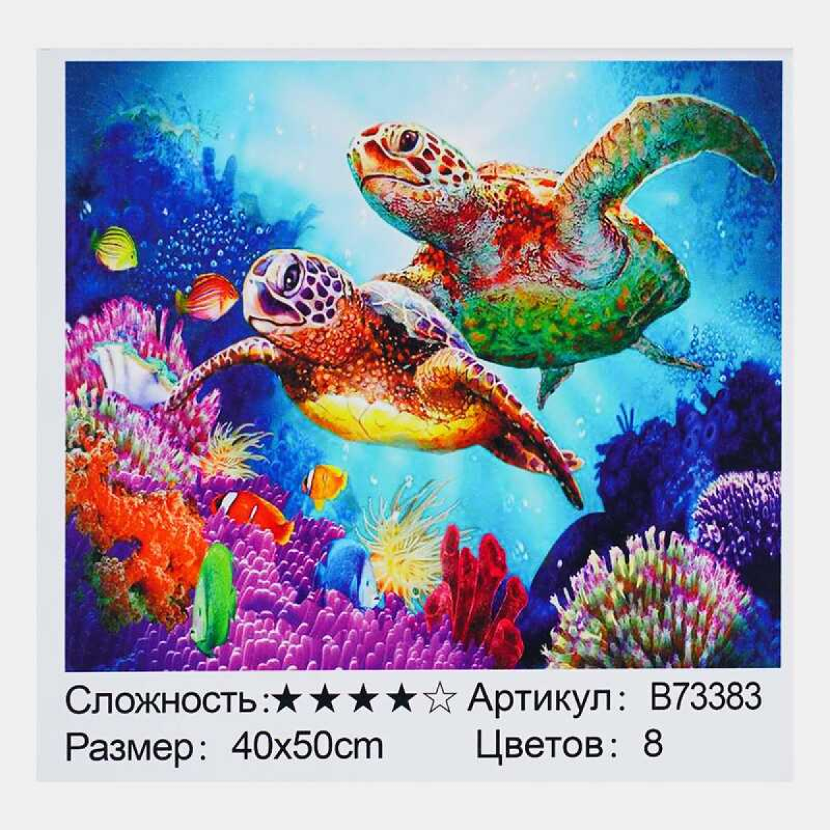Картина за номерами + Алмазна мозаїка B 73383 (30) “TK Group“, 40х50 см, “Черепахи“, в коробці