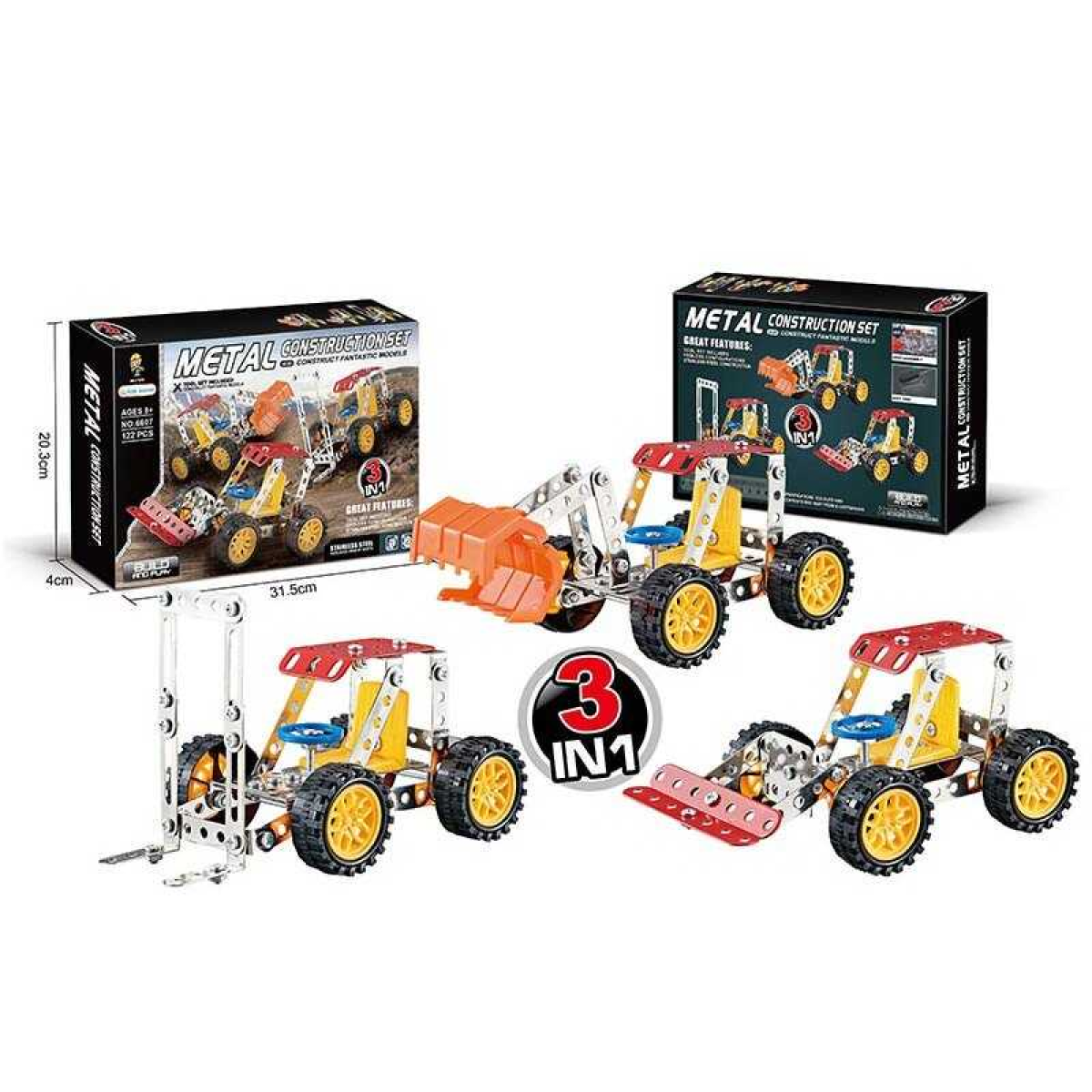 Конструктор 6607 (72/2) металевий, спецтехніка, 3 варіанти машинки, 122 елементи, в коробці