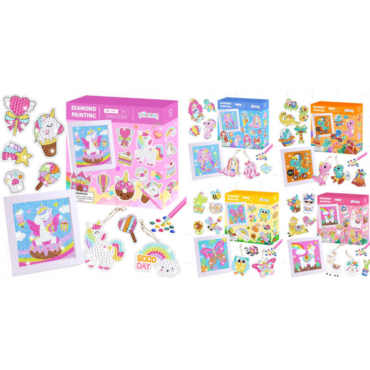 Алмазна мозаїка C 64274 (60) 4 види, картина, рамка, наліпки, 2 брелоки, фурнітура, алмази, тарілочка, віск, стилус, ВИДАЄТЬСЯ МІКС ВИДІВ, в коробці