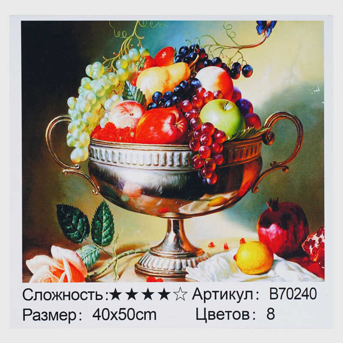 Картина за номерами + Алмазна мозаїка B 70240 (30) “TK Group“, 40х50 см, “Ваза з фруктами“, в коробці