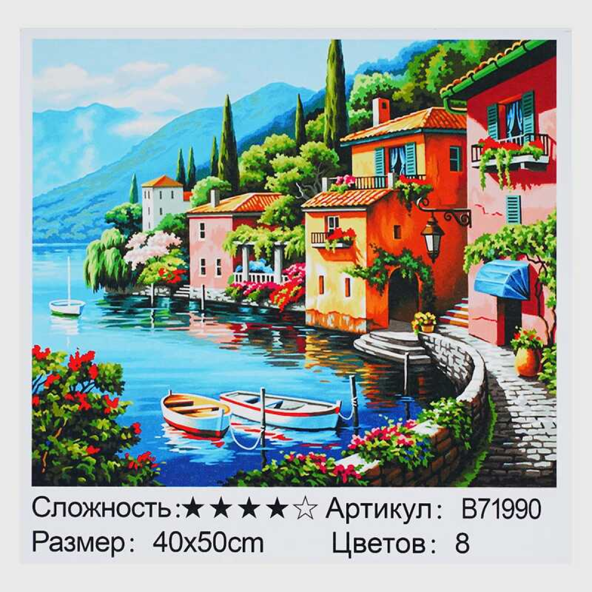 Картина за номерами + Алмазна мозаїка B 71990 (30) “TK Group“, 40х50 см, “Ранок на березі озера“, в коробці