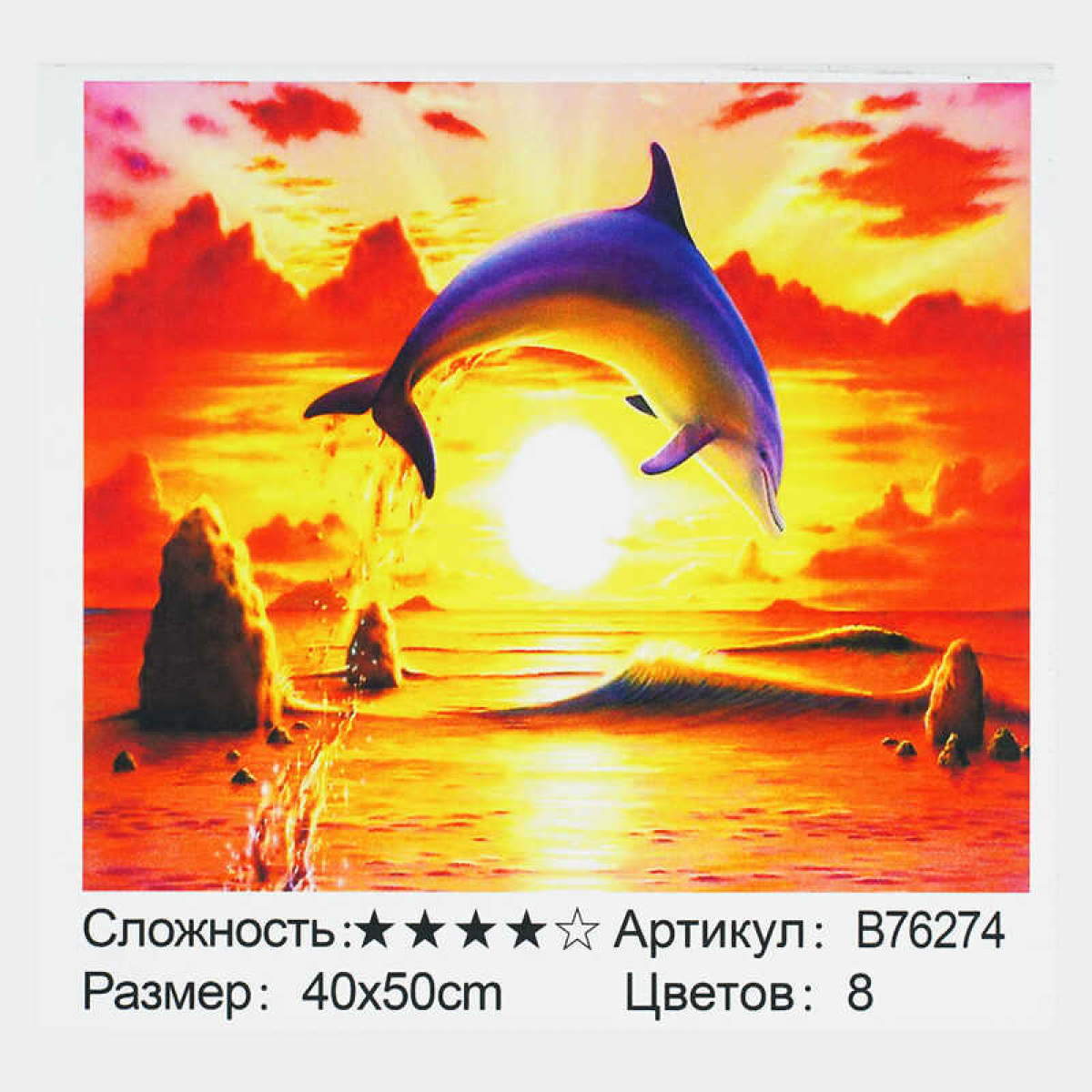 Картина за номерами + Алмазна мозаїка B 76274 (30) “TK Group“, 40х50 см, “Дельфін“, в коробці