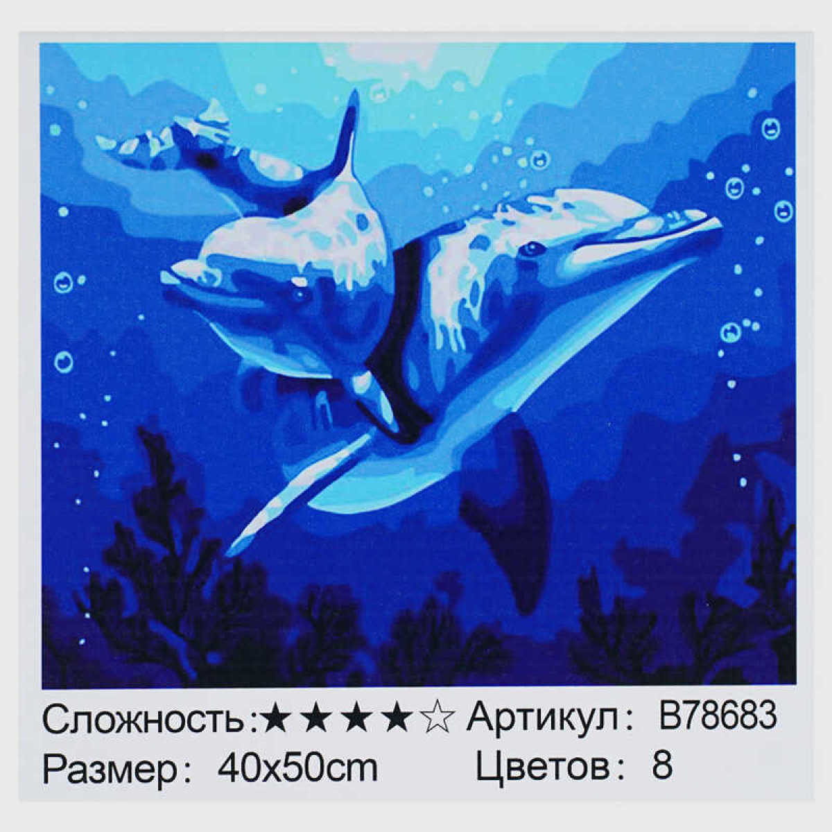 Картина за номерами + Алмазна мозаїка B 78683 (30) “TK Group“, 40x50 см, “Дельфіни”, в коробці