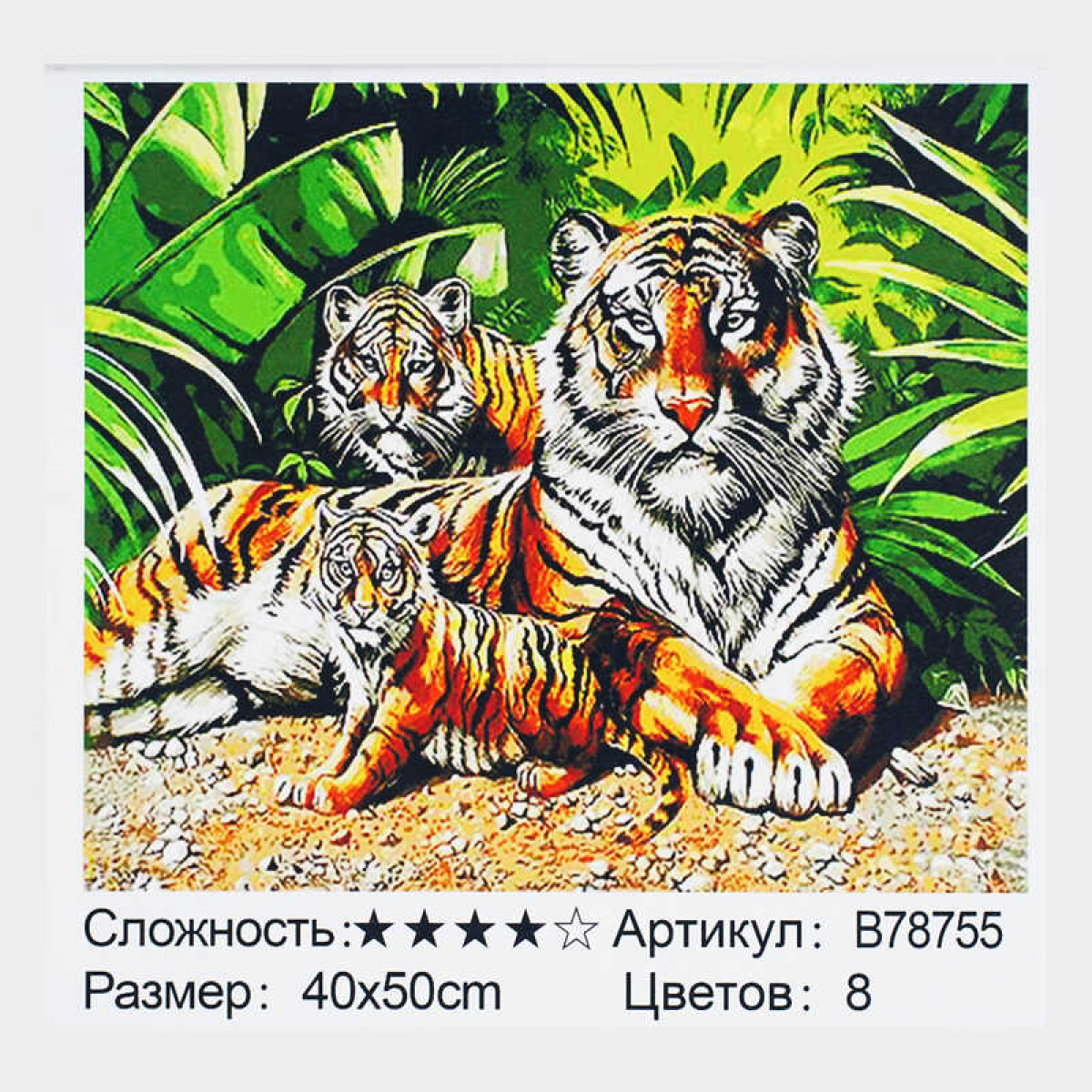 Картина за номерами + Алмазна мозаїка B 78755 (30) “TK Group“, 40х50 см, “Сімейство тигрів“, в коробці