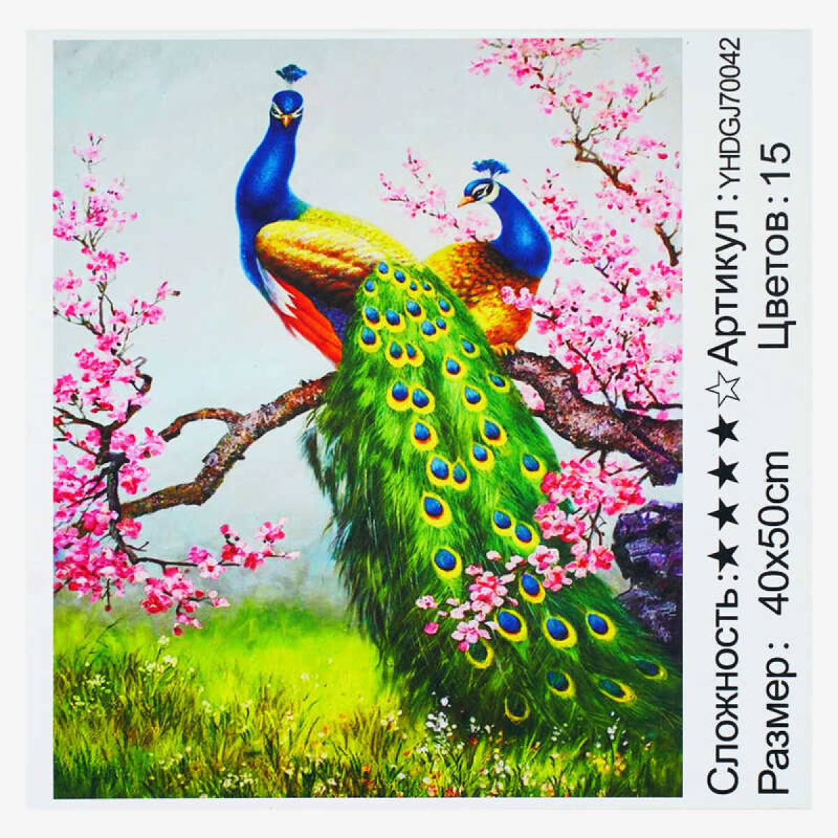 Картина за номерами + Алмазная мозаїка 2в1 YHDGJ 70042 (30) “TK Group“, 50х40см, “Пави на дереві“, в коробці