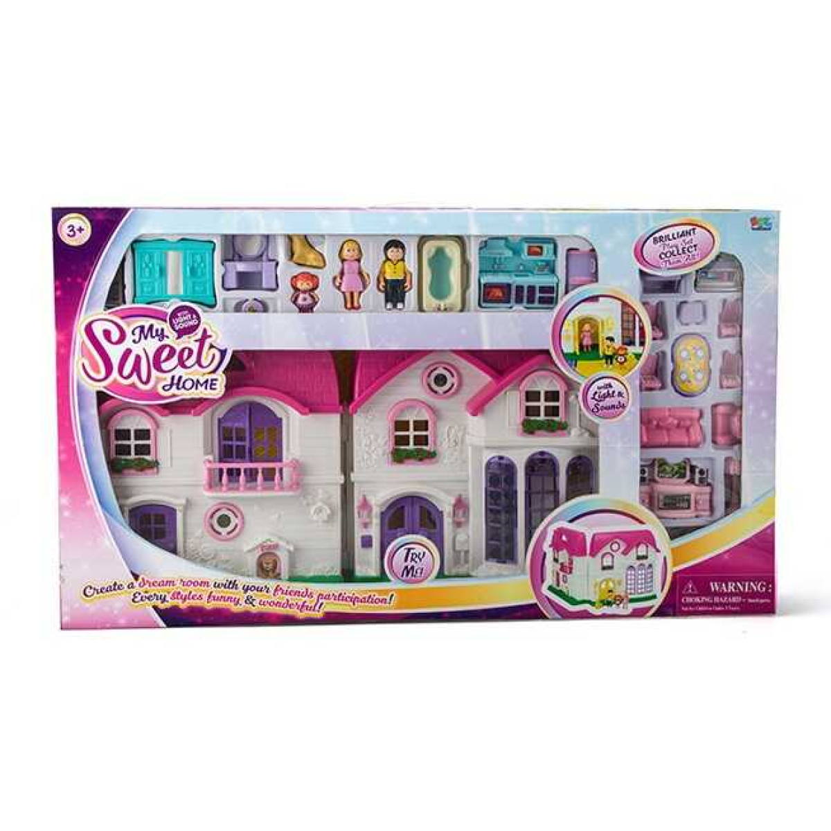 Будиночок 16567 (6) підсвічування, звук домофона, фігурки членів сім“ї та песика, муляжі меблів, побутової техніки, в коробці