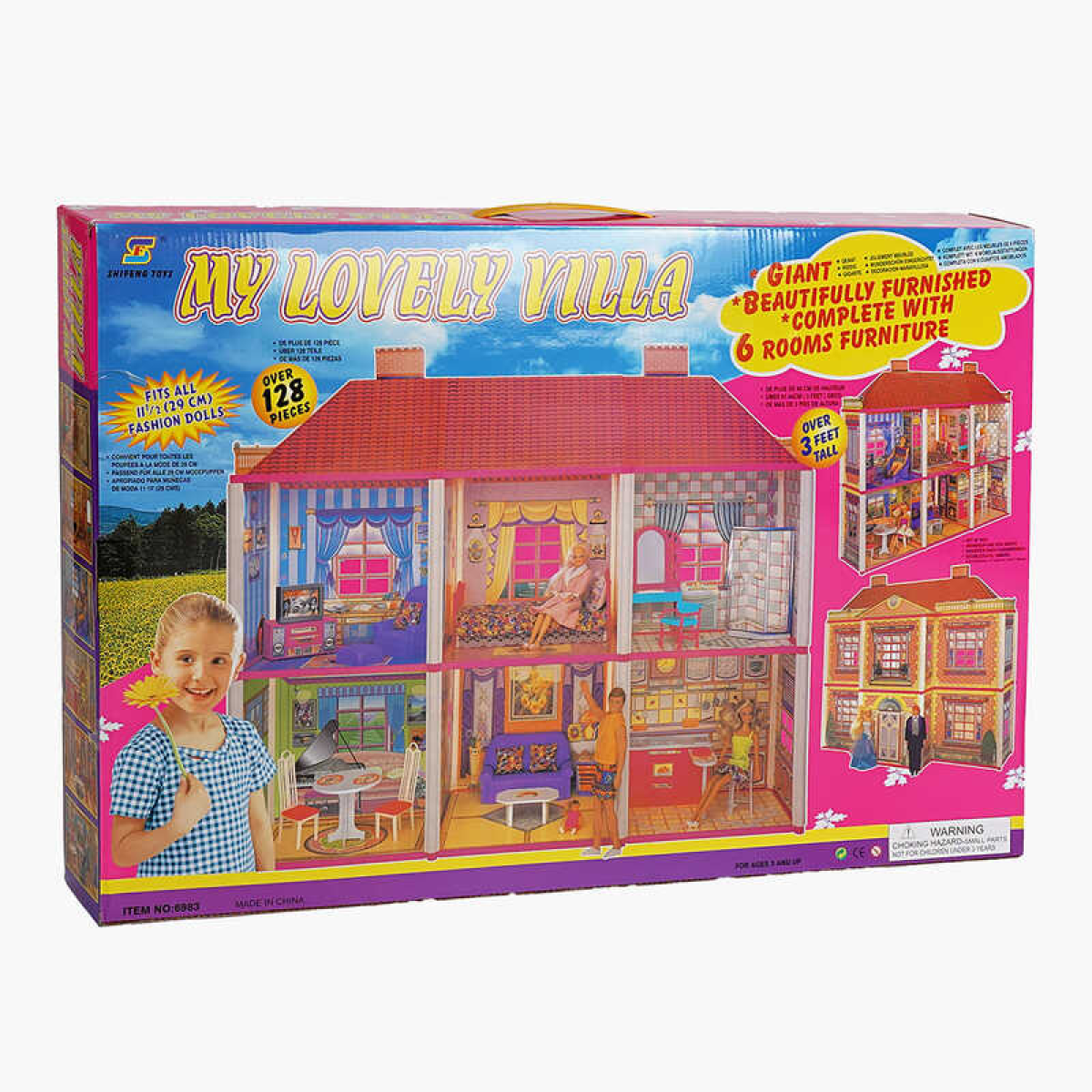 Будиночок для ляльок 6983 (6) 2 поверхи, 128 деталей, меблі, в коробці