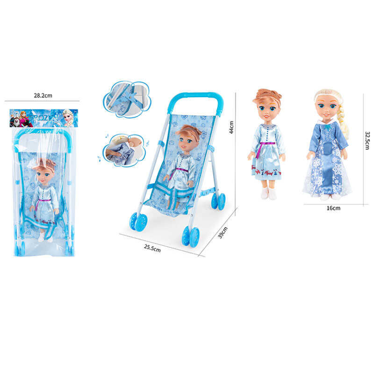 Візок з лялькою YL 1032 A (48) 2 види, металева основа, висота ляльки 35 см, у пакеті