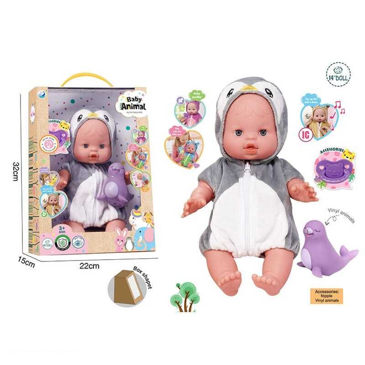 Пупс A 921 B (24/2) висота: 32 см, вініловий, знімний одяг, рухливі кінцівки, аксесуари, скляні очі, музичний чип, в коробці