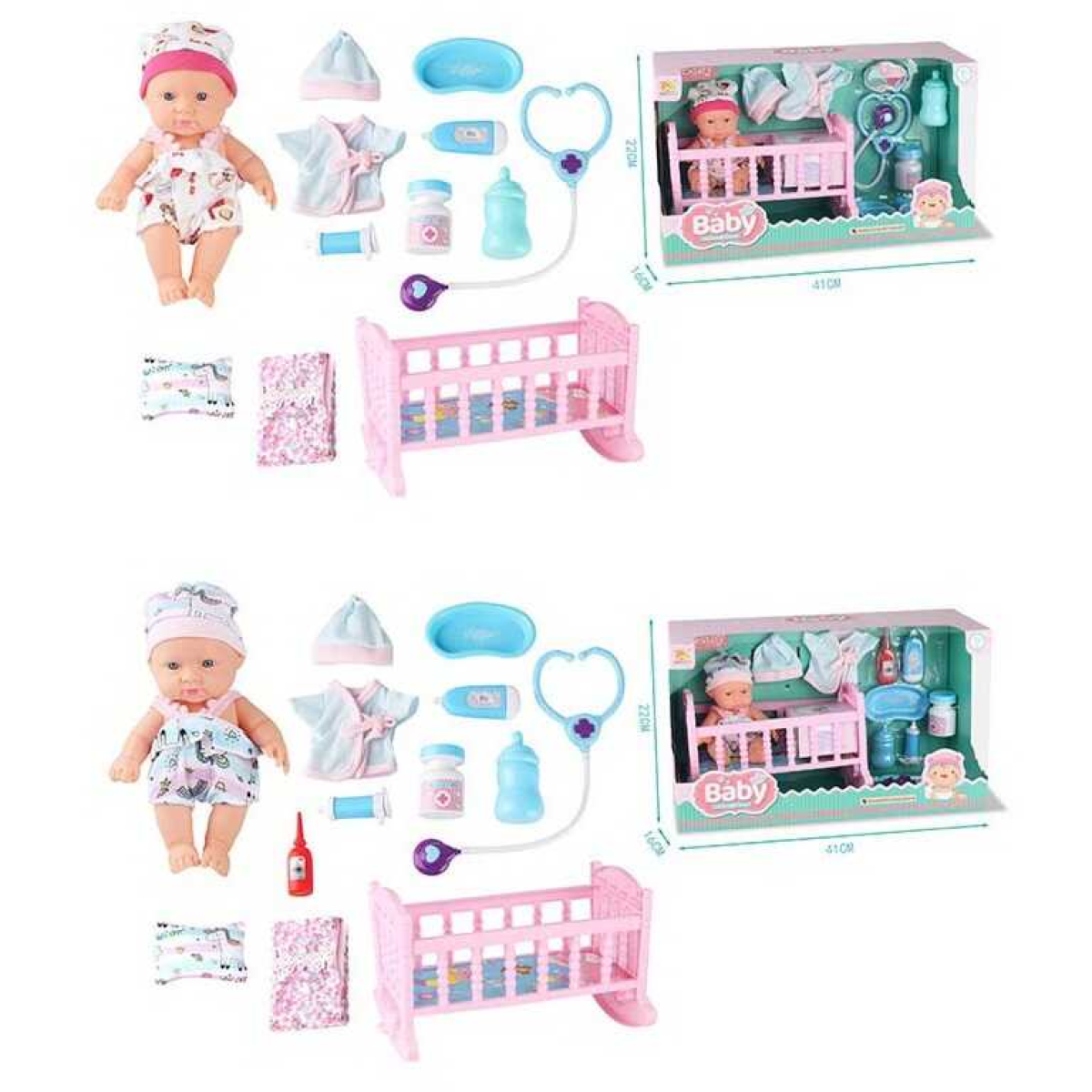 Пупс BLS-W 95 (24/2) 2 види, ліжко, одяг, медичне приладдя, у коробці