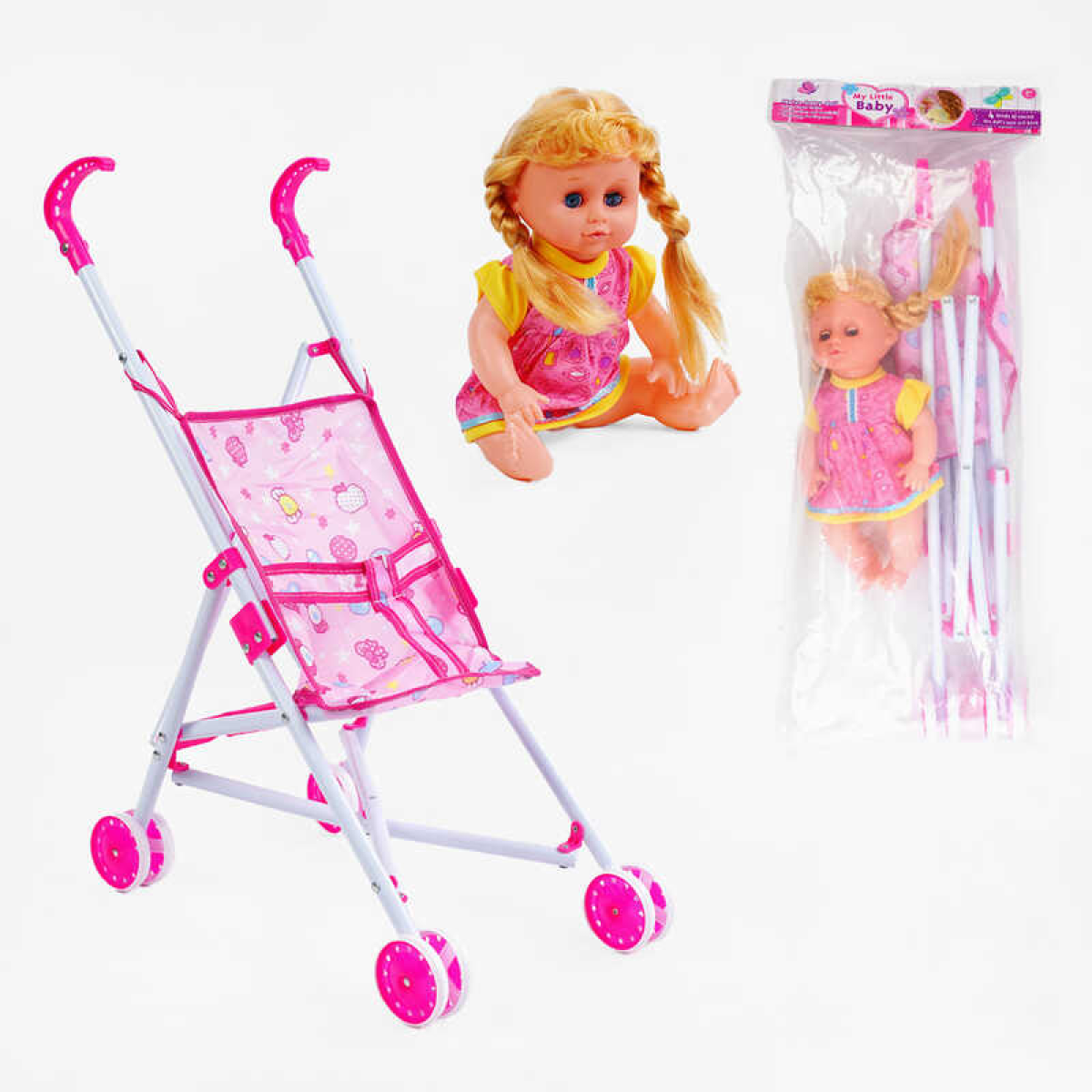 Лялька з візочком LA 66-1 (36/2) плаче, сміється, заплющує очі, висота 31 см, в пакеті