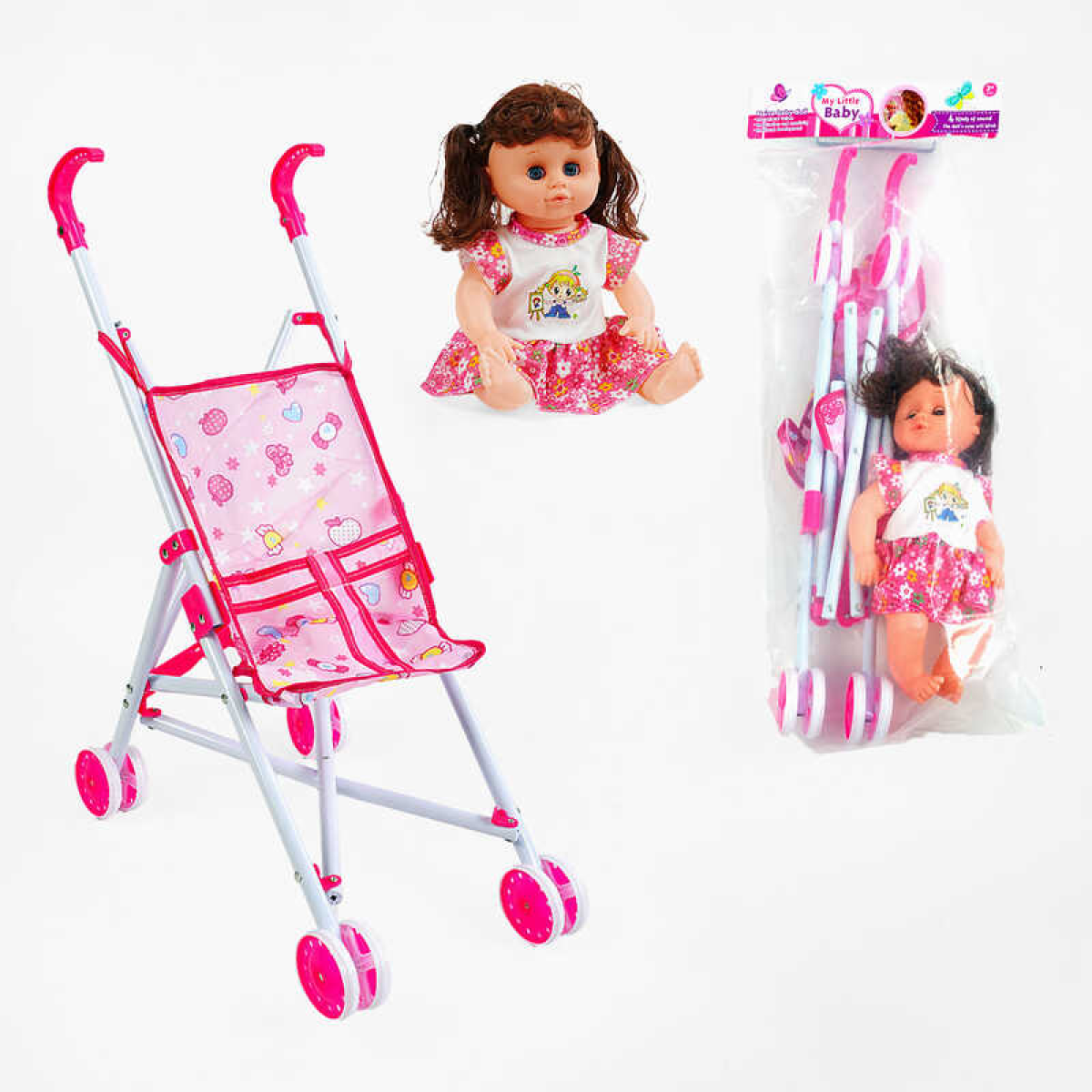 Лялька з візочком LA 66-2 (36/2) плаче, сміється, заплющує очі, висота 31 см, в пакеті
