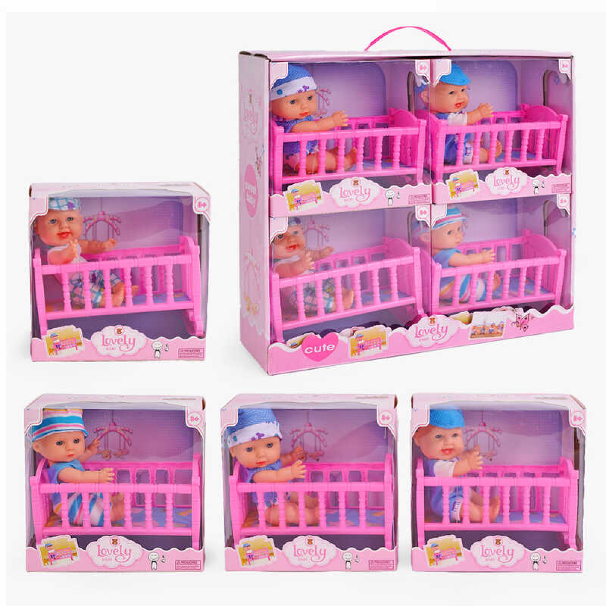 Пупс 2303 (12) 19 см, гумовий, колиска, в коробці, ЦІНА ЗА 4 ШТУКИ В БЛОЦІ