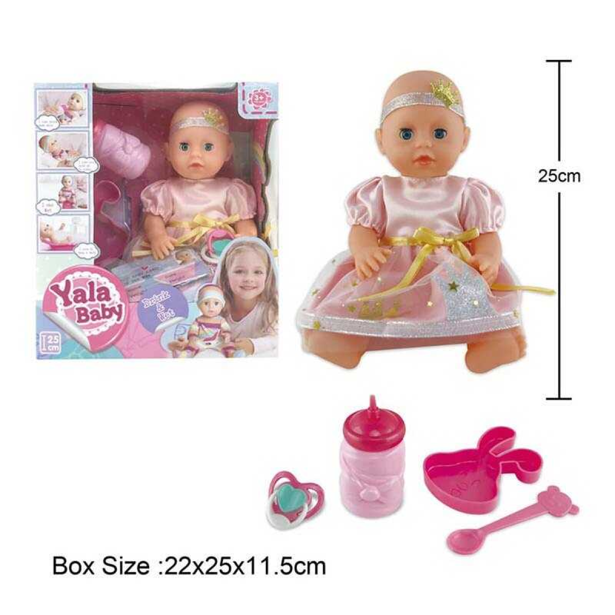 Пупс YL 2208 C (48) висота 25 см, пляшечка, пустушка, пляшечка, тарілочка, ложка, закриваються очі, п’є, ходить на горщик, в коробці