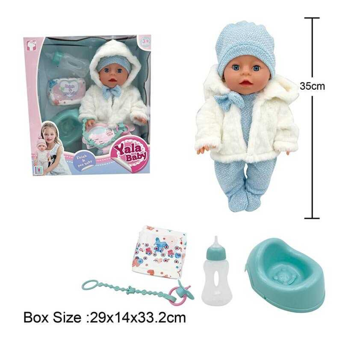 Пупс YL 2435 A-I (16) заплющує очі, п’є з пляшки, ходить на горщик, аксесуари, висота 35 см, в коробці