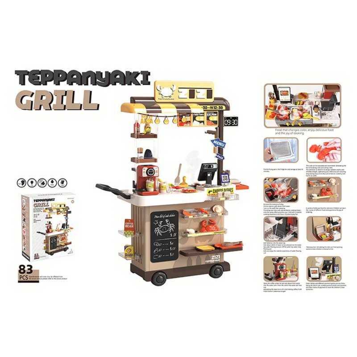 Магазин 889-285 (4) висота: 102 см, 83 елементи, звуки, підсвічування, парогенератор, автоматична подача води, посуд, муляжі їжі, в коробці
