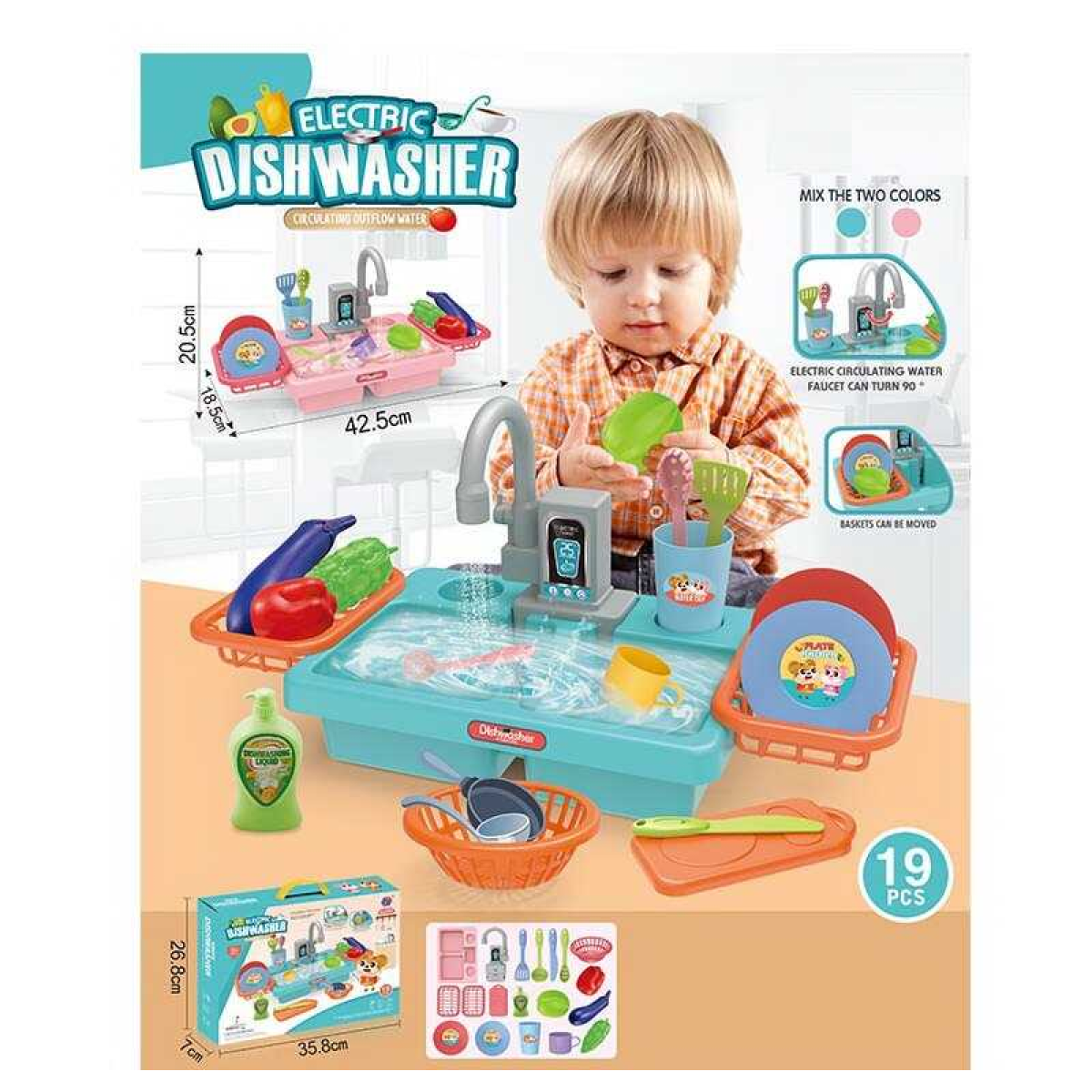 Мийка 2016-142 (36/2) автоматична подача води, 19 аксесуарів, кран повертається на 90 градусів, склянки, тарілки, столове приладдя, овочі, в коробці