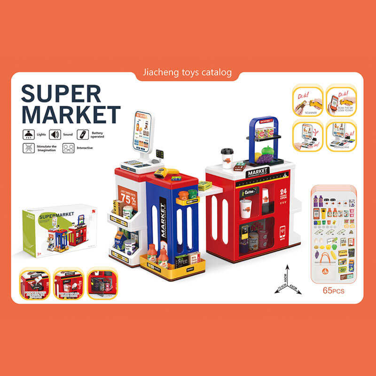 Супермаркет 668-147 (8) світло, звук, касовий апарат, сканер, стіл, кавомашина, полиці, муляжі харчових продуктів, купюр, в коробці