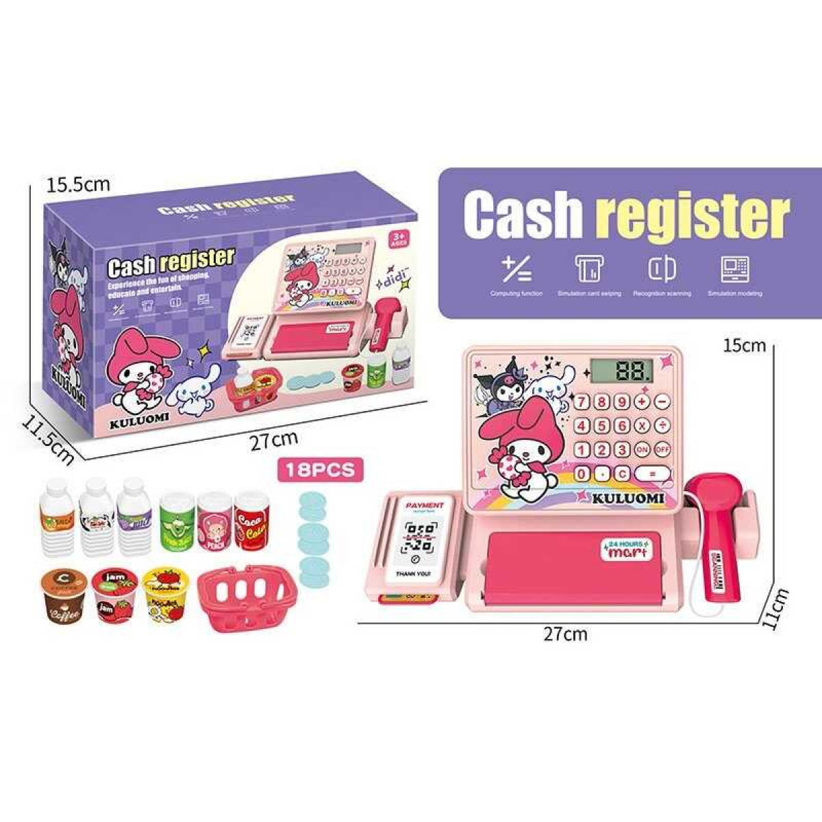Касовий апарат QY 0087-11 (54/2) 18 предметів, муляж грошей, звук, підсвічування, банківська картка, кошик, в коробці
