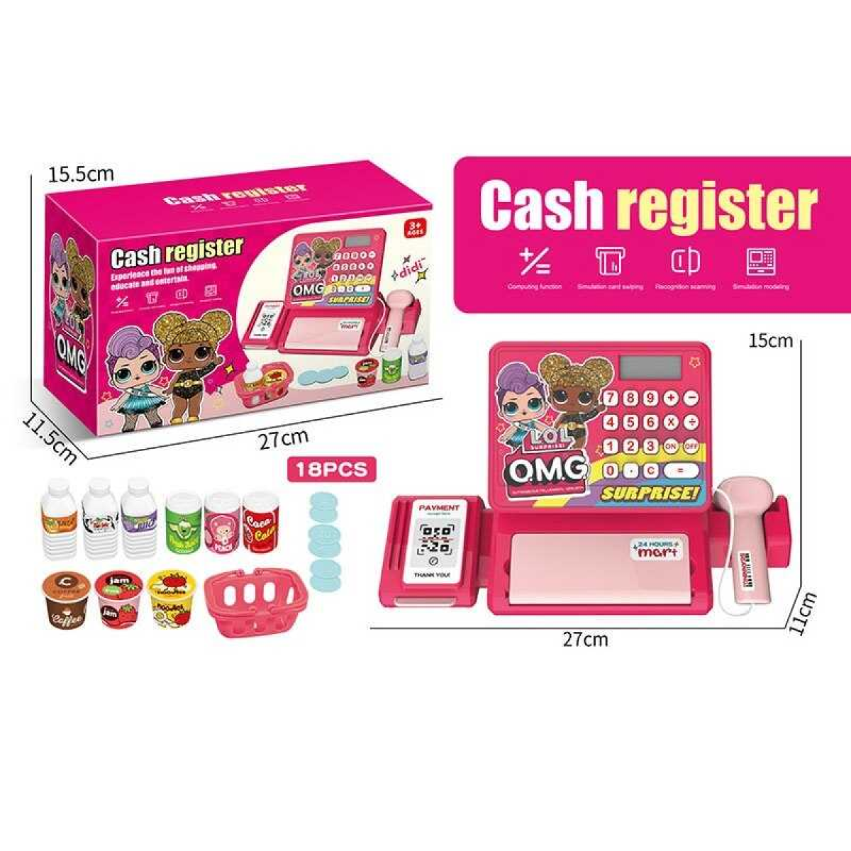 Касовий апарат QY 0087-16 (54/2) 18 предметів, муляж грошей, звук, підсвічування, банківська картка, кошик, в коробці