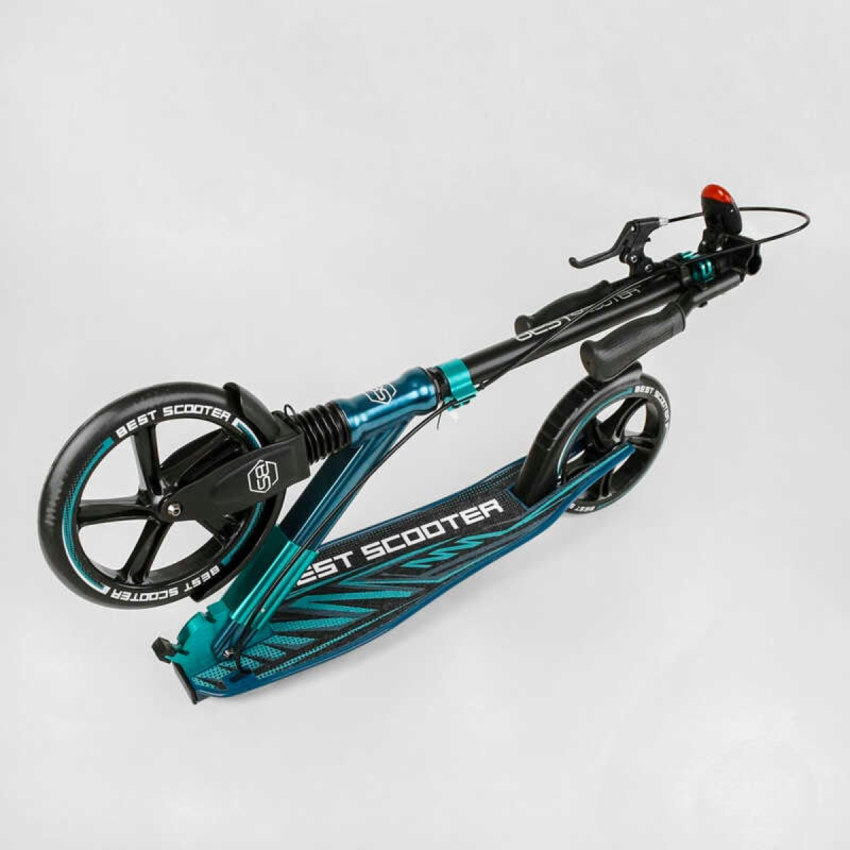 Самокат алюмінієвий “Best Scooter“ 43685 (2) колеса PU, ФАРА, затискач керма, d передніх коліс - 230мм, d задніх коліс 200мм, 1 амортизатор передній