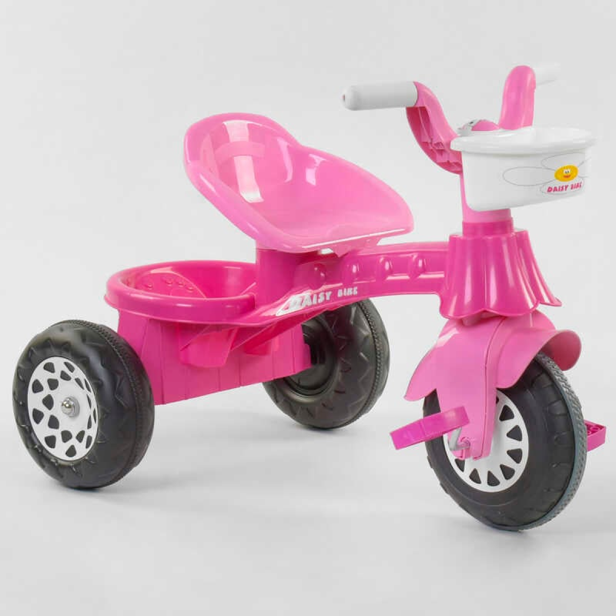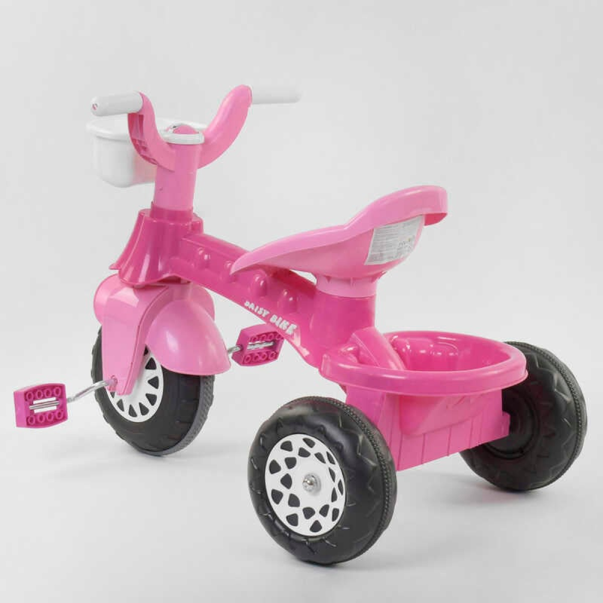 Триколісний велосипед Pilsan 07-140 P (1) колір РОЖЕВИЙ з білими ручками, пластикові колеса з прогумованою накладкою, корзина, багажник, в пакеті