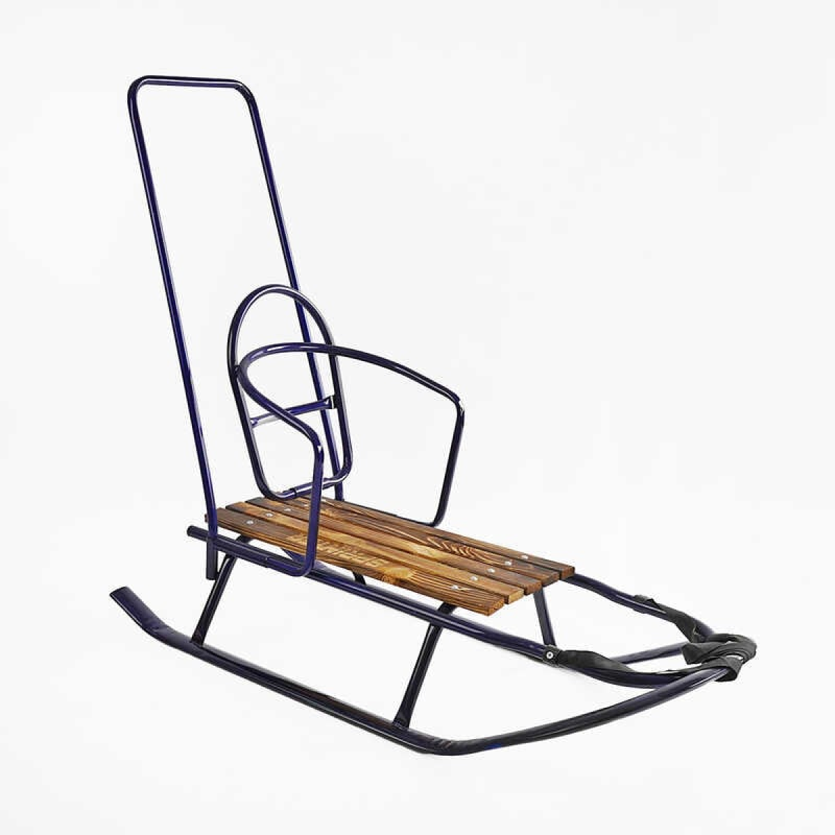 гр Санки плоскі полози, з ручкою, колір синій Ц18083 (1) зйомна спинка