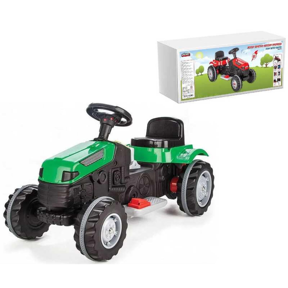 Трактор 05-116 (1) ЗЕЛЕНИЙ, “Pilsan“, акумулятор 6V, сидіння, що регулюється, колеса з гумовими накладками, в коробці