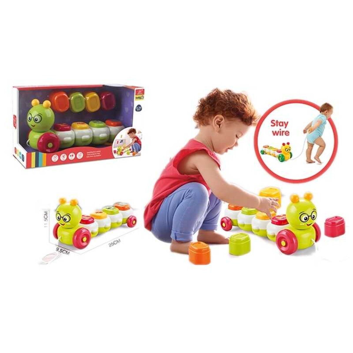 Каталка музична 898-2023 (36/2) “Гусеничка“, веселі мелодії, звукова імітація сміху, літери англійською, тваринки, в коробці