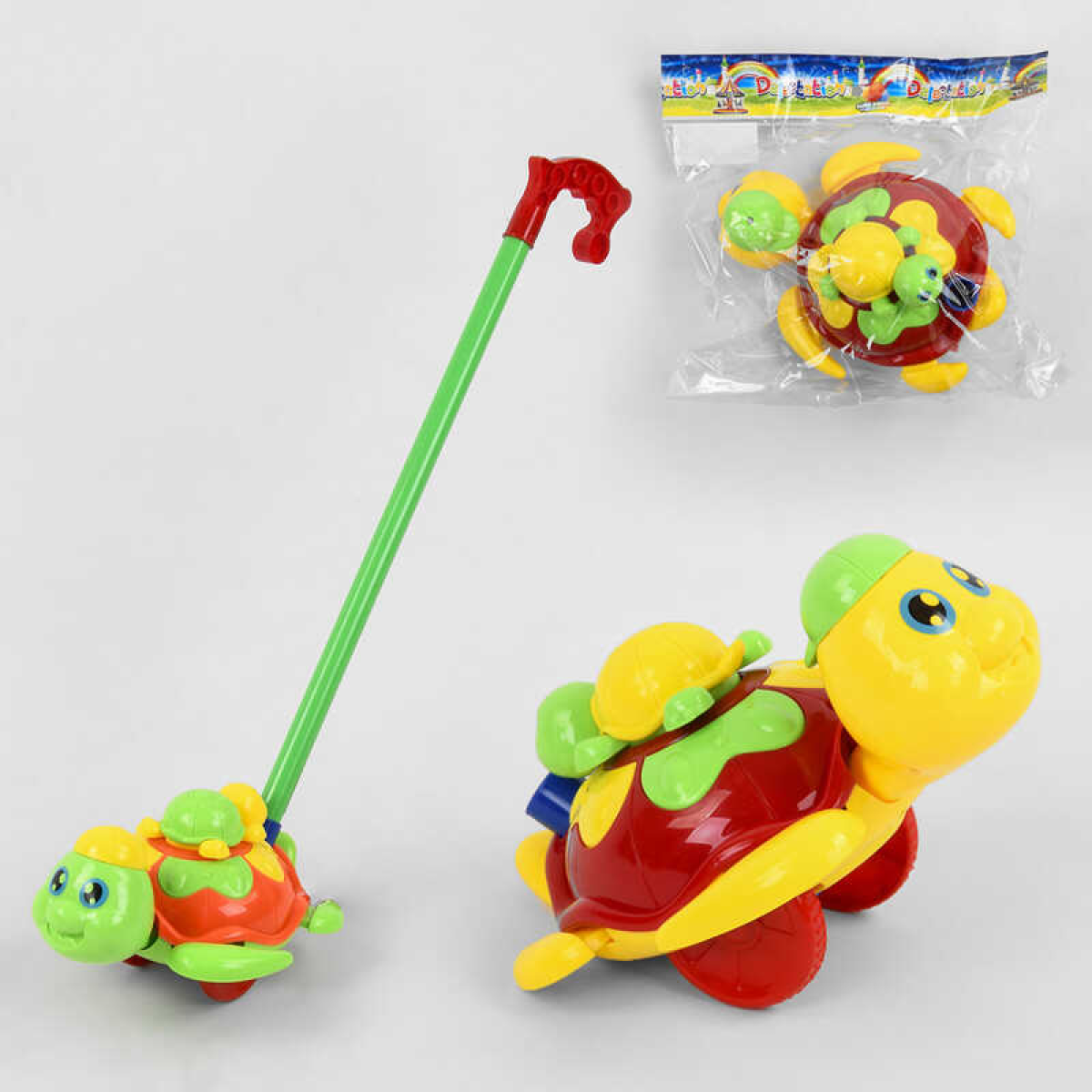 Каталка Черепашка 369 (72/2) 2 кольори, з дзвіночком, з ручкою, в пакеті