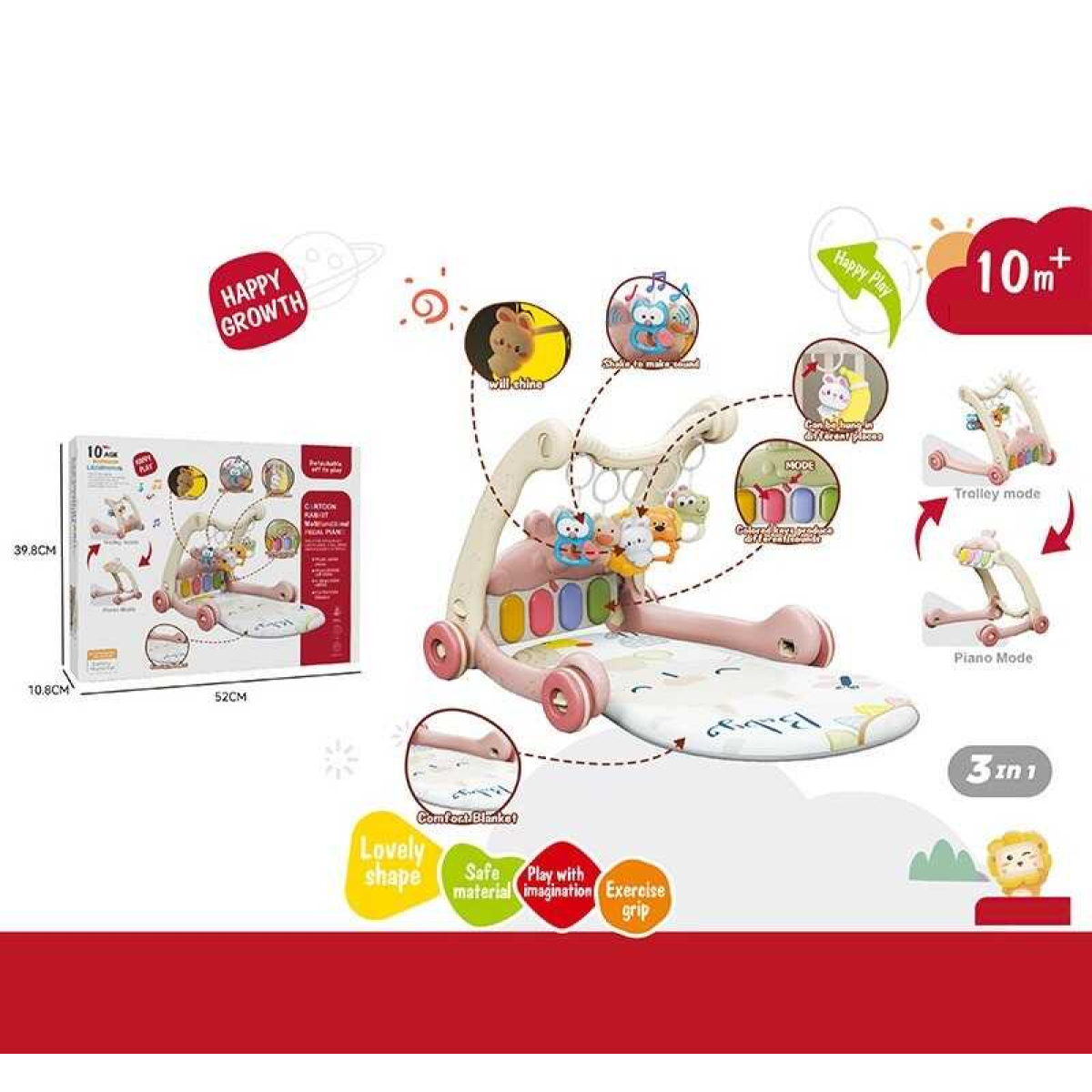 Ходунки 368-65 R (8) 3в1, килимок, музична панель, музика, регулювання гучності, підсвічування, 5 підвісок, в коробці