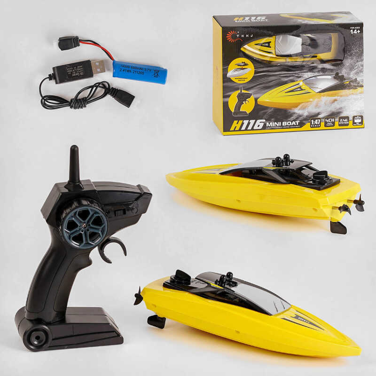 • Катер на радіокеруванні H 116 (24) 1:47, пульт керування 2,4 HGz, акумулятор 3,7 V, в коробці