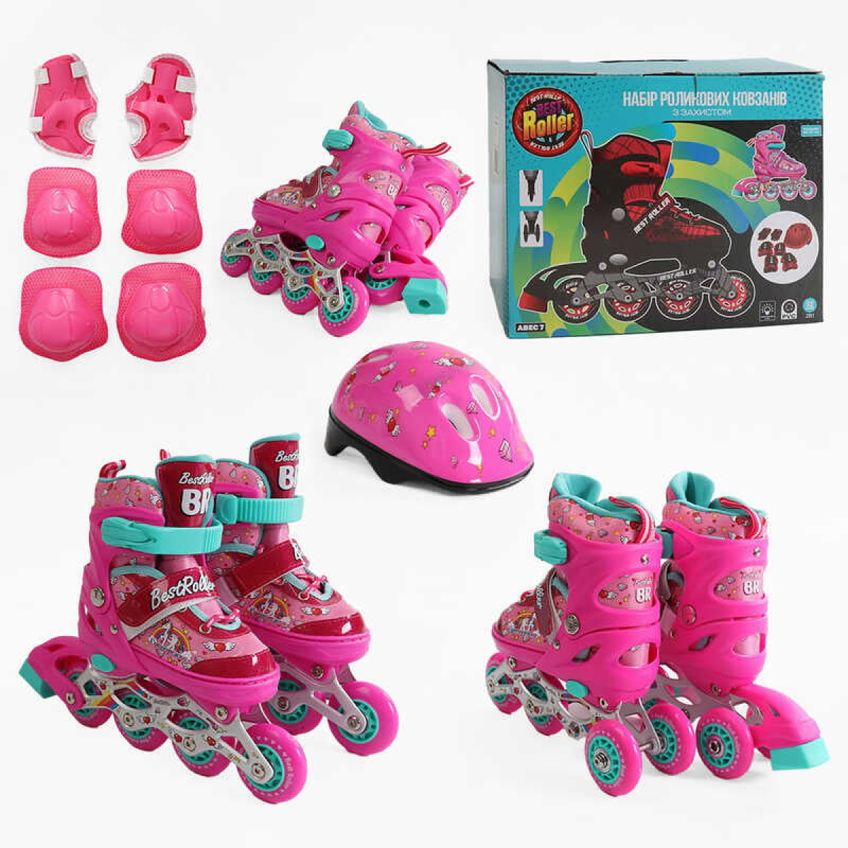• Ролики 10588-S розмір 28-31 (6) колеса PVC, устілка 17 - 19 см, ПЕРЕДНЄ КОЛЕСО СВІТЛО, d – 6.5 см, шолом - 21х17 см, захист, в коробці