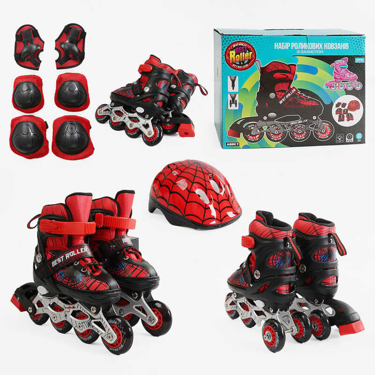 Ролики 12405-S розмір 28-31 (6) колеса PVC, устілка 17 - 19 см, ПЕРЕДНЄ КОЛЕСО СВІТЛО, d – 6.5 см, шолом - 21х17 см, захист, в коробці