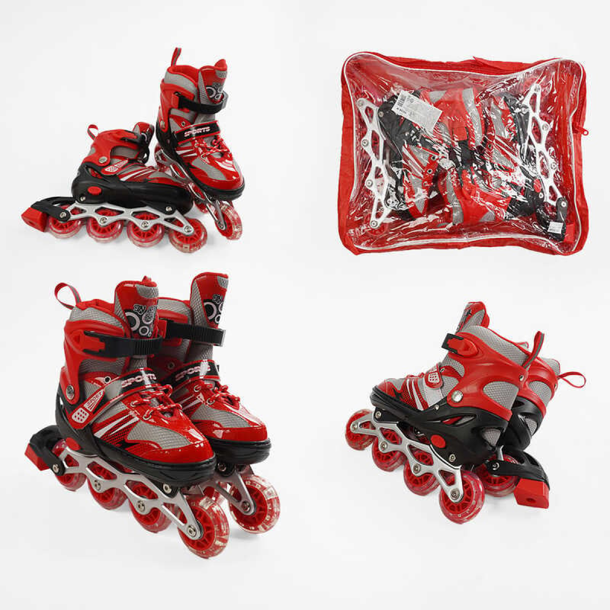 Ролики 73426-S /розмір 29-33/ колір – ЧЕРВОНИЙ (6) колеса PVC, устілка 17-20 см, ПЕРЕДНЄ КОЛЕСО СВІТЛО, d – 6.5 см, в сумці
