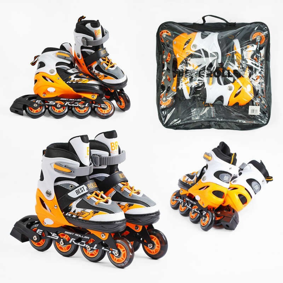 Ролики 75677-М Best Roller /розмір 34-37/ колір – ПОМАРАНЧЕВИЙ (6) колеса PU, ПЕРЕДНЄ КОЛЕСО СВІТЛО, устілка 21.5-24 см, d колес – 7 см, в сумці