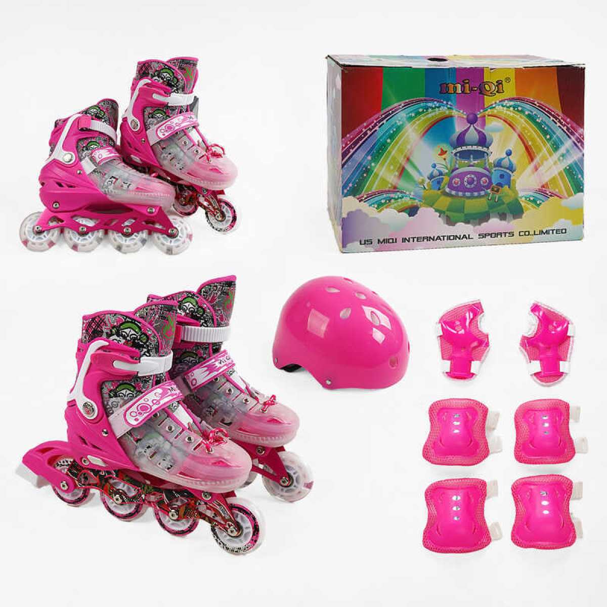 Ролики 9637-76 L розмір 39-43 (6) колір РОЖЕВИЙ, колеса PU, d колес – 6 см, устілка 24 см, підсвічування коліс, шолом, захист, в коробці