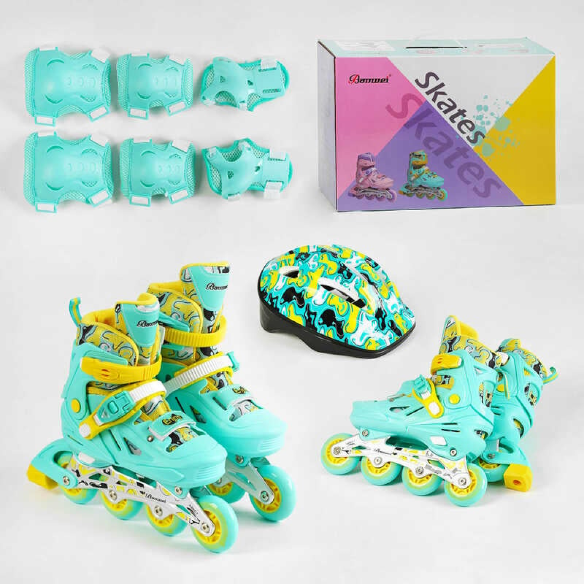 Ролики с захистом 30202-М розмір 35-38 (6) колір БІРЮЗОВИЙ, колеса PU, ПЕРЕДНЄ КОЛЕСО СВІТЛО, устілка – 18.5-20.5 см, d колес – 6.5 см, в коробці