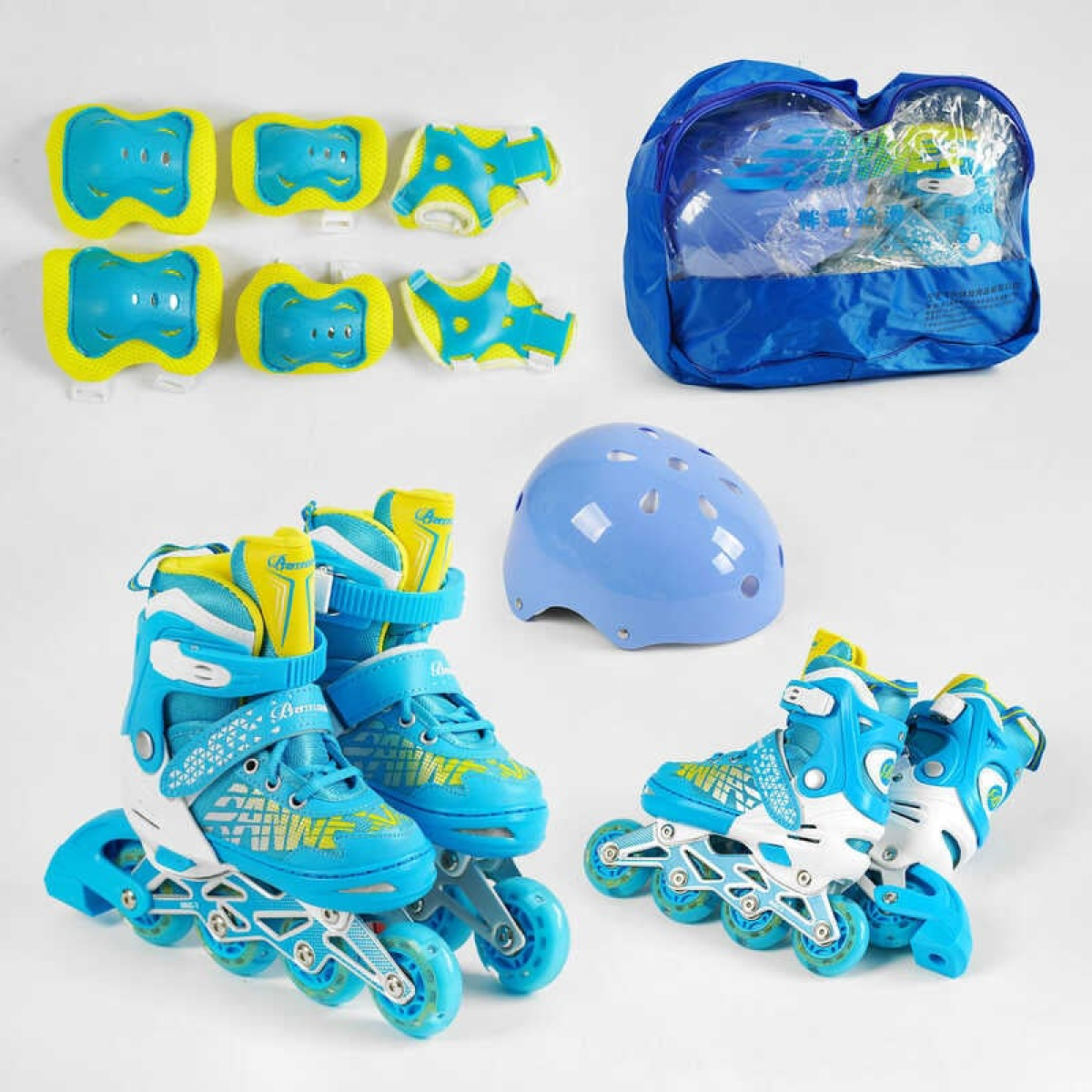 Ролики с захистом 7945-S розмір 31-34 (6) колір СИНІЙ, колеса PU, ПЕРЕДНЄ КОЛЕСО СВІТЛО, устілка 17-19 см, d колес – 6 см, в сумці