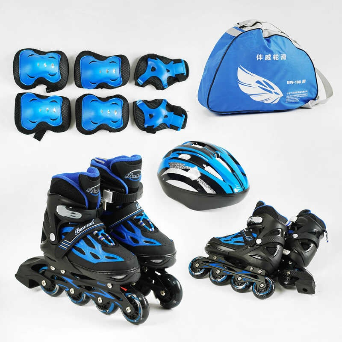 Ролики с захистом 86930-М розмір 35-38 (6) колір СИНІЙ, устілка 20-24 см, колеса PU, КОЛЕСА СВІТЛО, шолом, комплект захисту, d колес – 6.5 см, в сумці