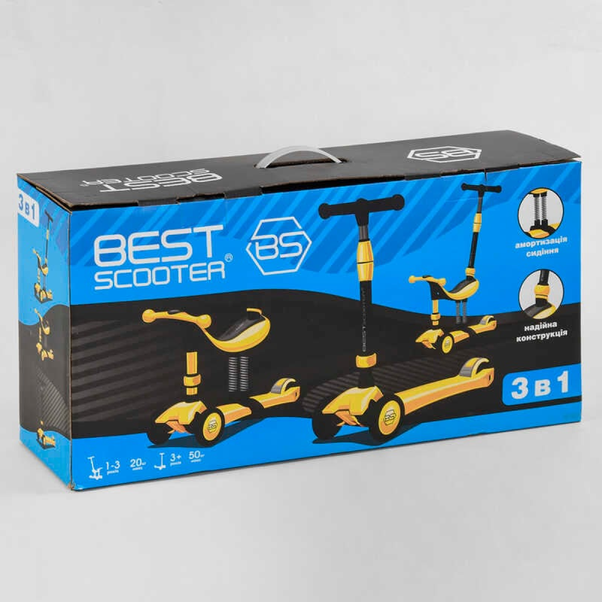 Самокат-велобіг 3в1 триколісний BS-71899 (4) Best Scooter, 3 колеса PU зі світлом, сидіння, амортизатори, батьківська ручка