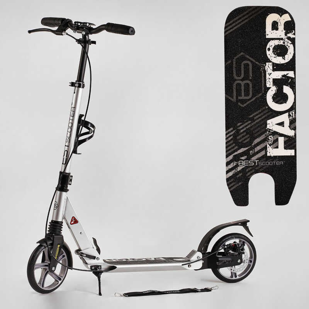 Самокат алюмінієвий Best Scooter BS-81766 (4) “Factor“, ручне дискове гальмо, діаметр PU коліс - 200мм, 2 амортизатори, підсклянник, в коробці