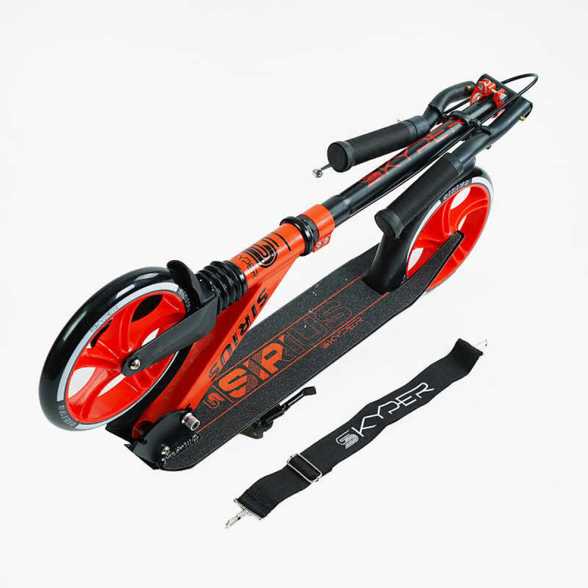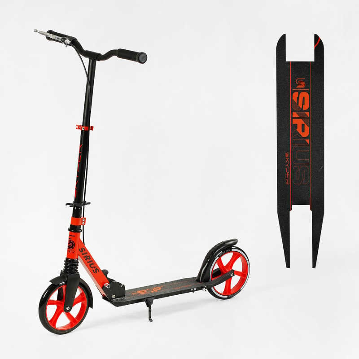 Самокат двоколісний “Skyper“ S - 86735 (4) “Sirius“, чорно-червоний, колеса PU 200 мм, 1 амортизатор, ручне гальмо, в коробці